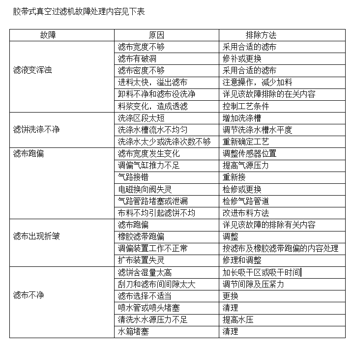 帶式過濾機操作規程及常見故障排除